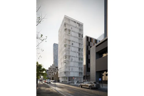 To the North, facing Morphet Road, a wall of 2.6 m will enclose the house elevation and a footpath with plant space will divide it from the street.